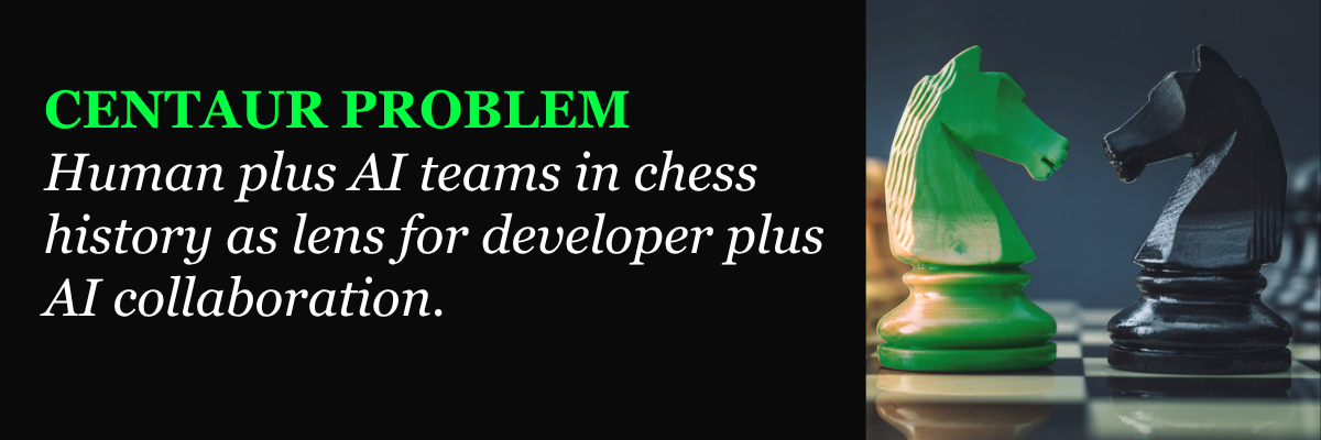 Today's software developers are the chess players of 2005. The centaur metaphor has been applied explicitly and repeatedly to AI-assisted coding. Alves and Cipriano's 2023 paper "The Centaur Programmer" directly maps Kasparov's model to software development.10 Kasparov himself, writing in PCGamer in 2023, warned: "You shouldn't be afraid of an AI taking your job. You should be far more worried about another human, using AI, because they might take your job."11 The Harvard Data Science Review published "Effective Generative AI: The Human-Algorithm Centaur" as a framework for the collaboration.12